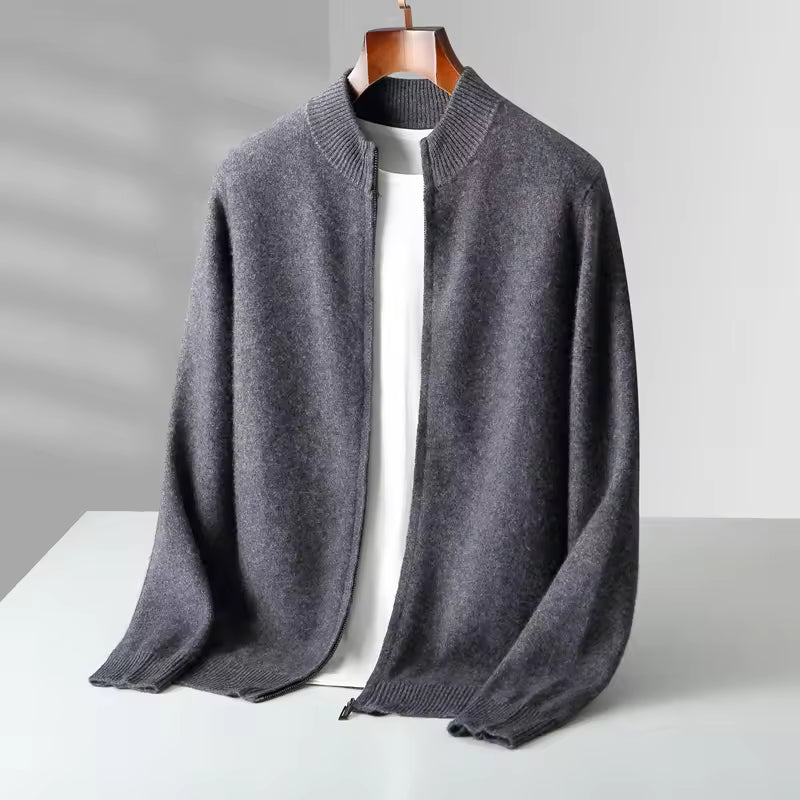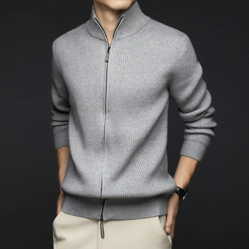 Suéter cálido con cuello simulado, cárdigan grueso con cremallera